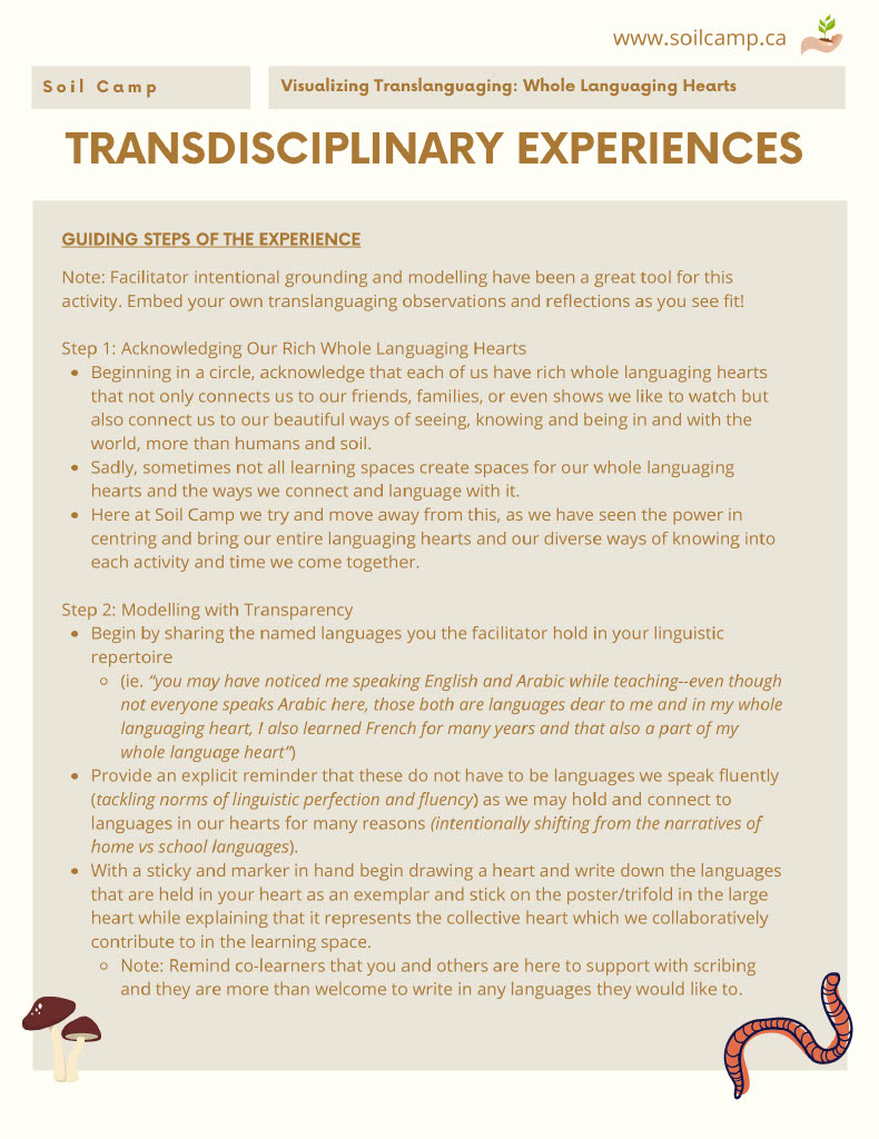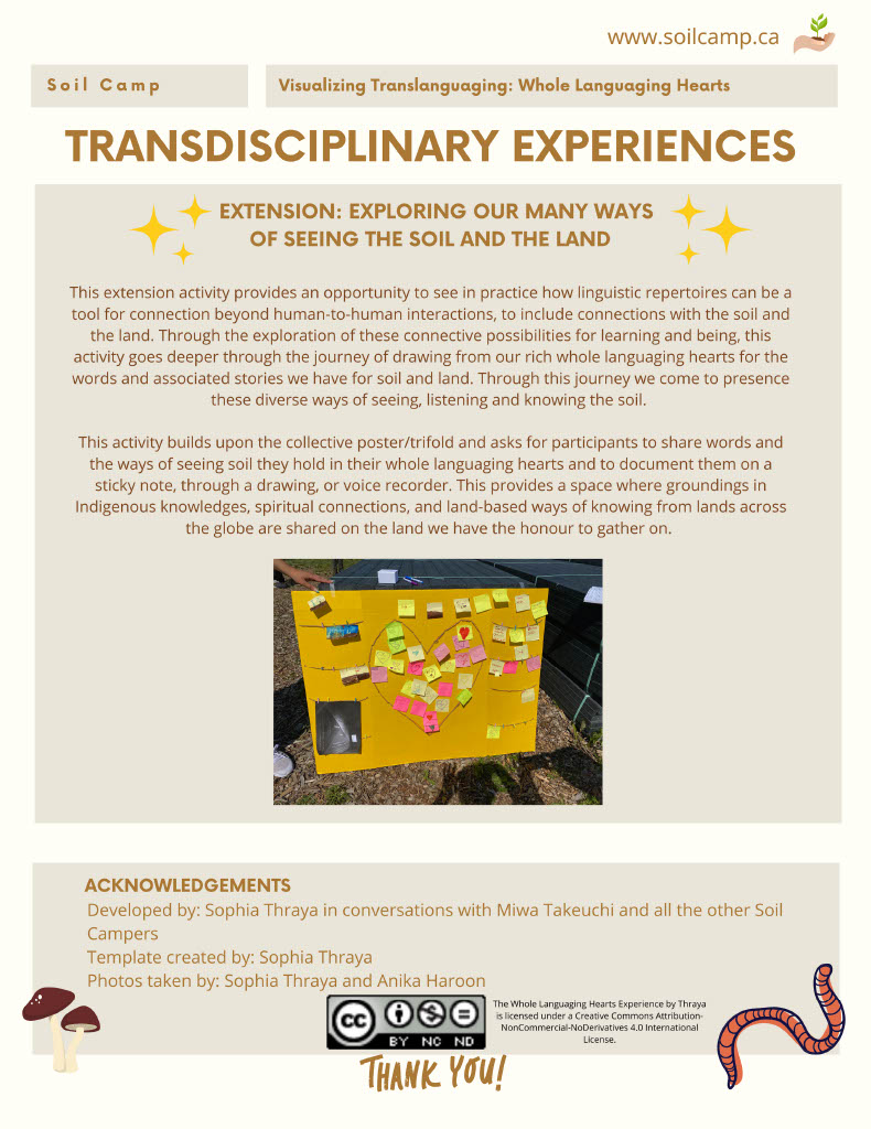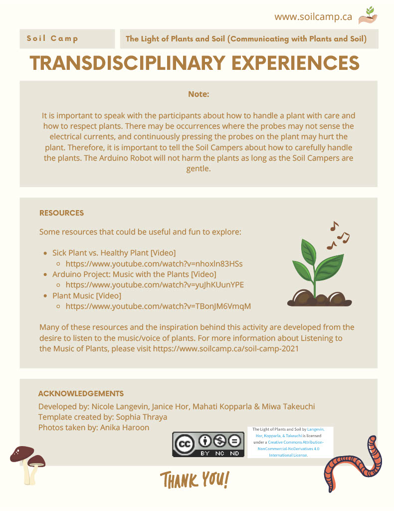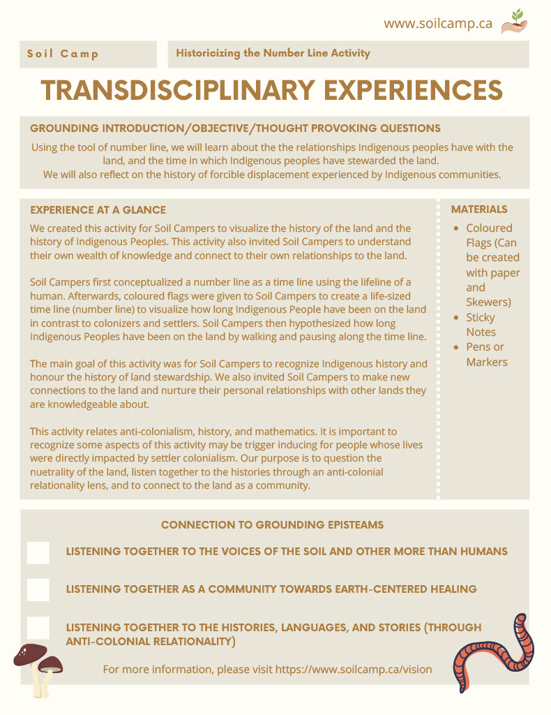These resources have been created by the community of Soil Camp researchers, teacher candidates, and community partners and the experiences were facilitated collectively by our team of teacher collaborators, facilitators, and community partners.