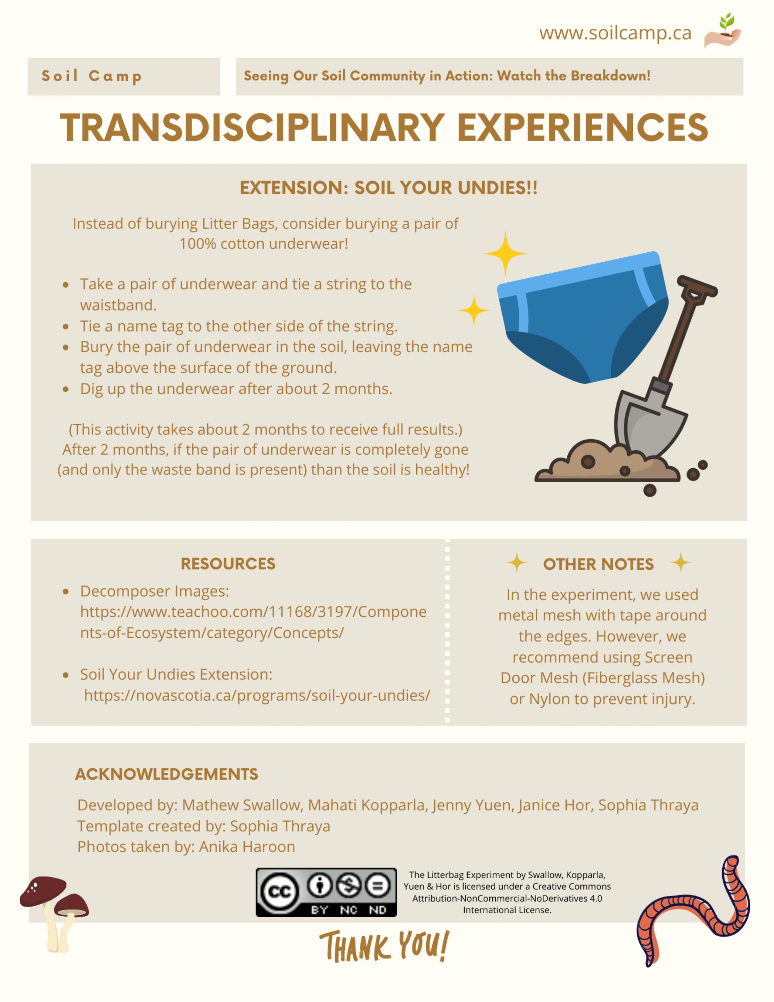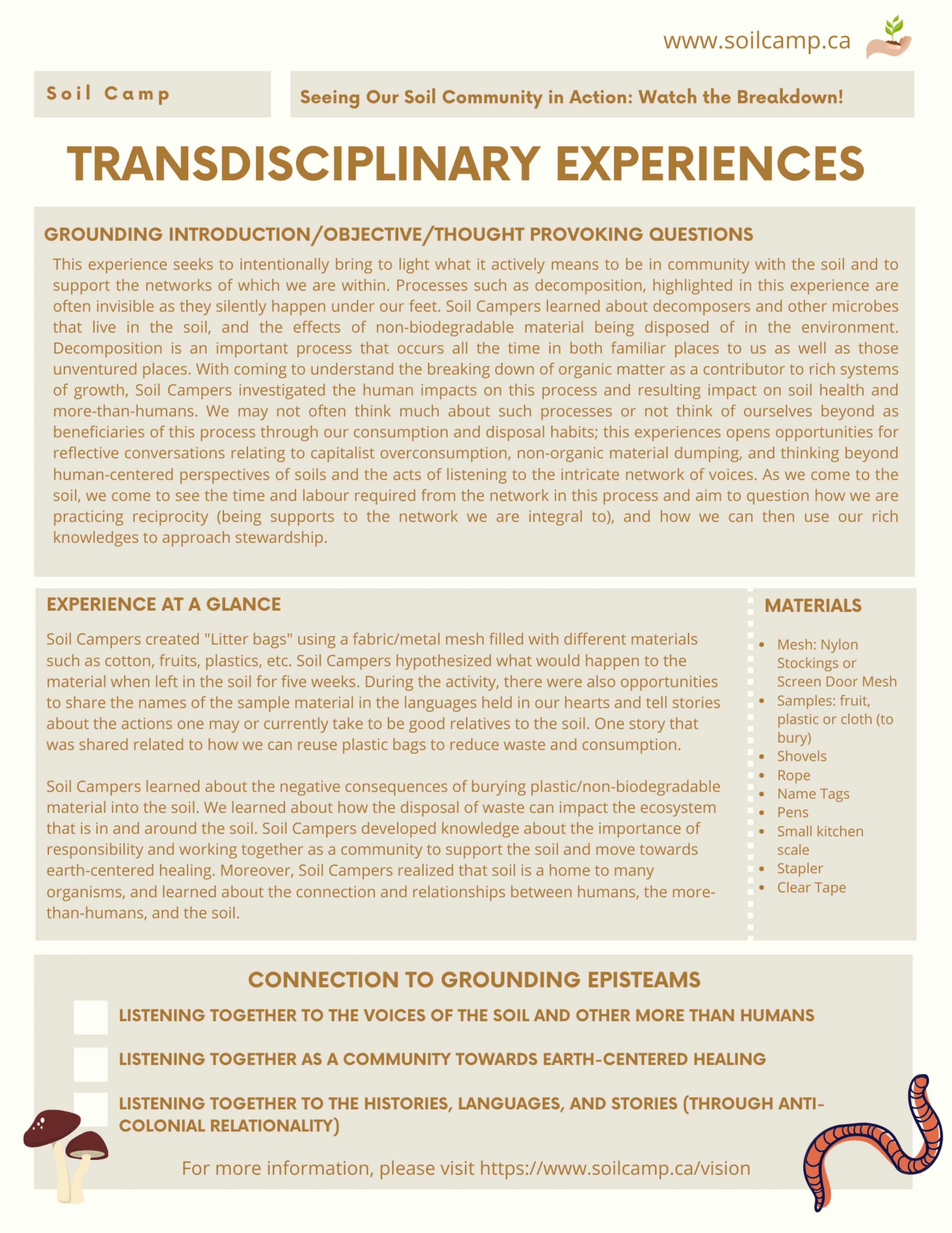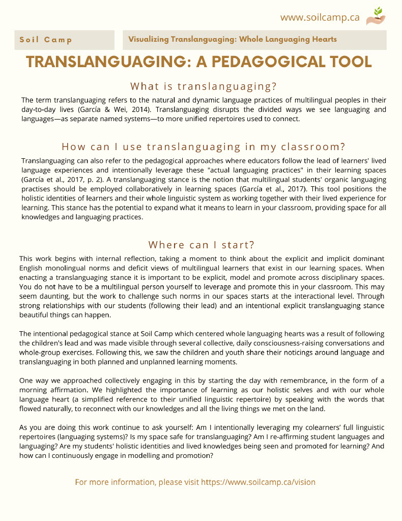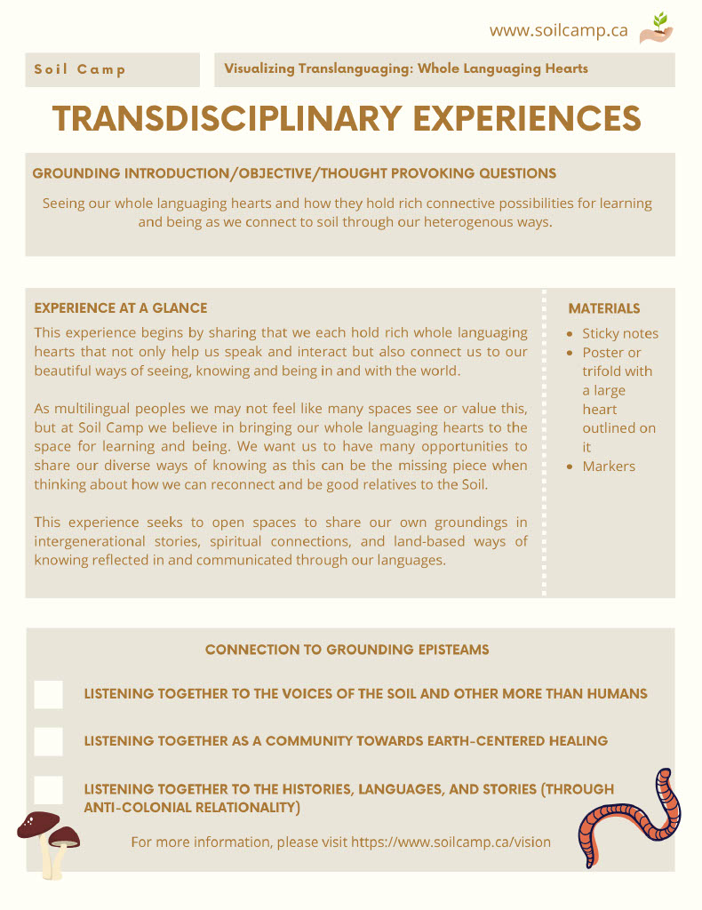 These resources have been created by the community of Soil Camp researchers, teacher candidates, and community partners and the experiences were facilitated collectively by our team of teacher collaborators, facilitators, and community partners.