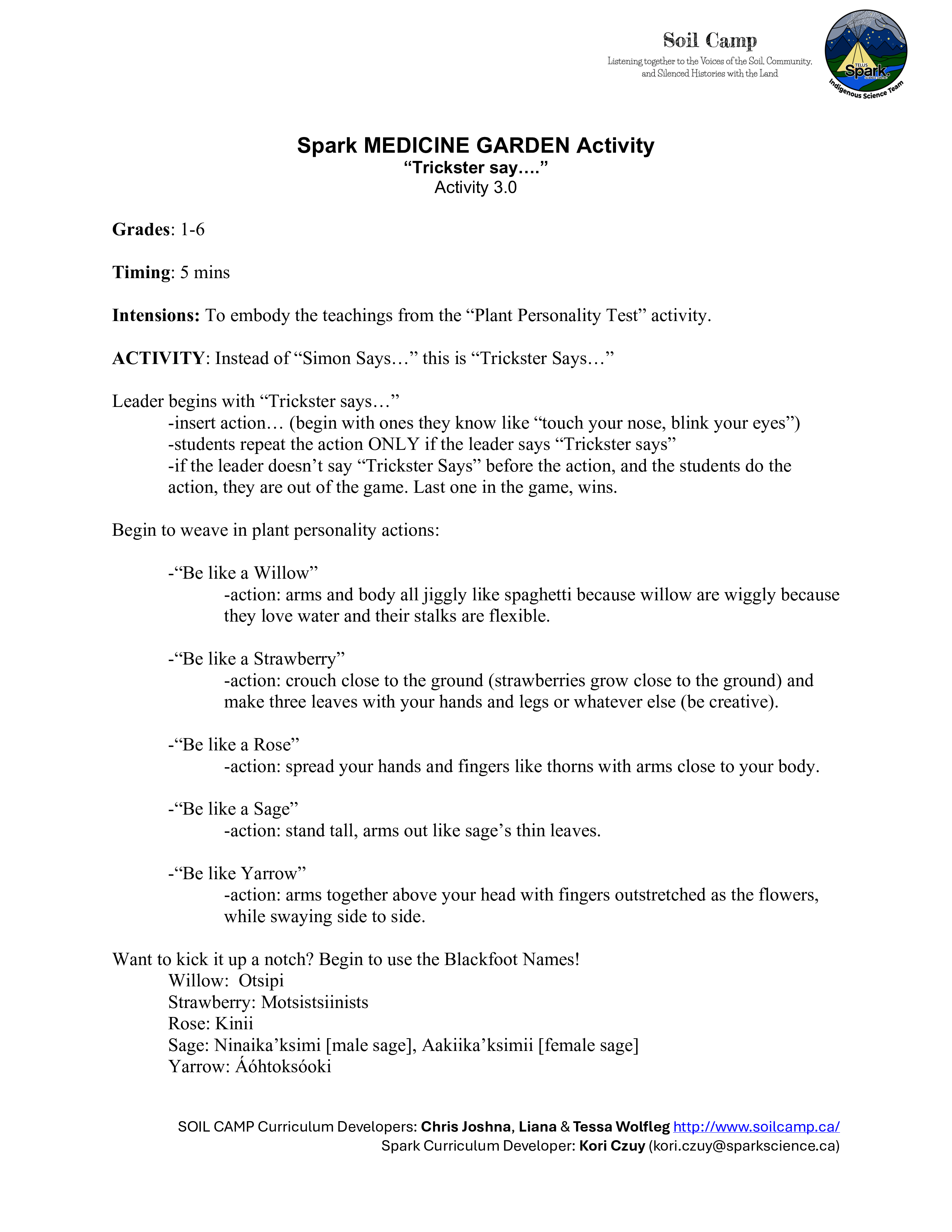 - Spark Medicine Garden Activities