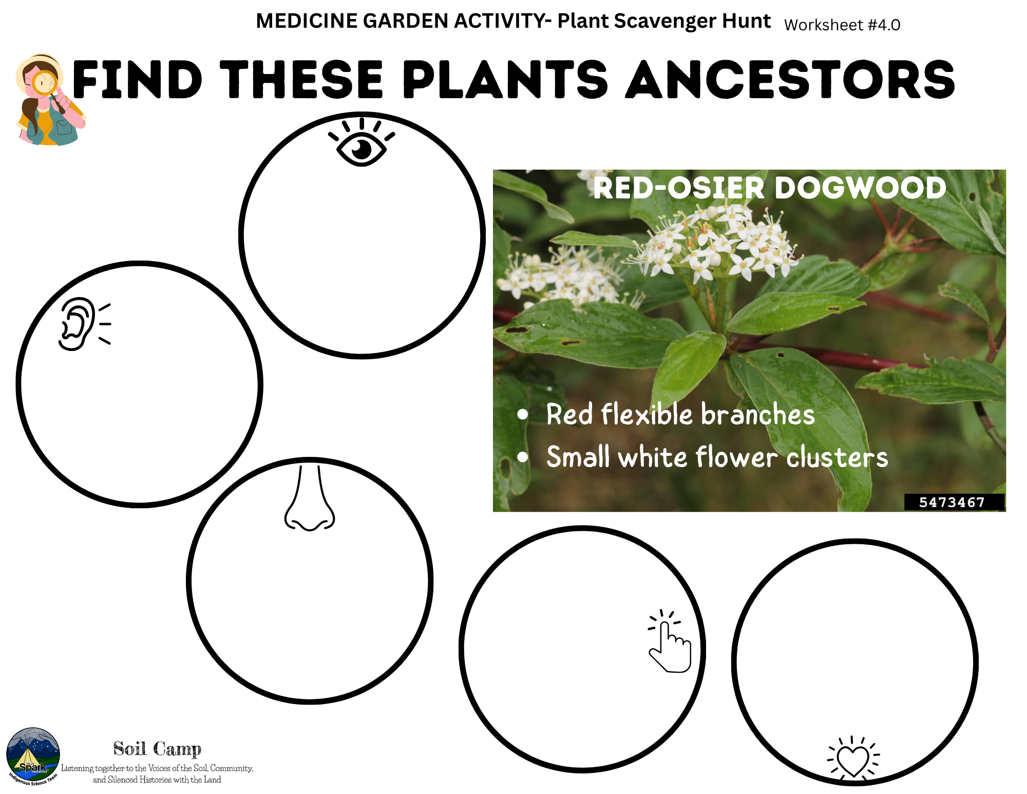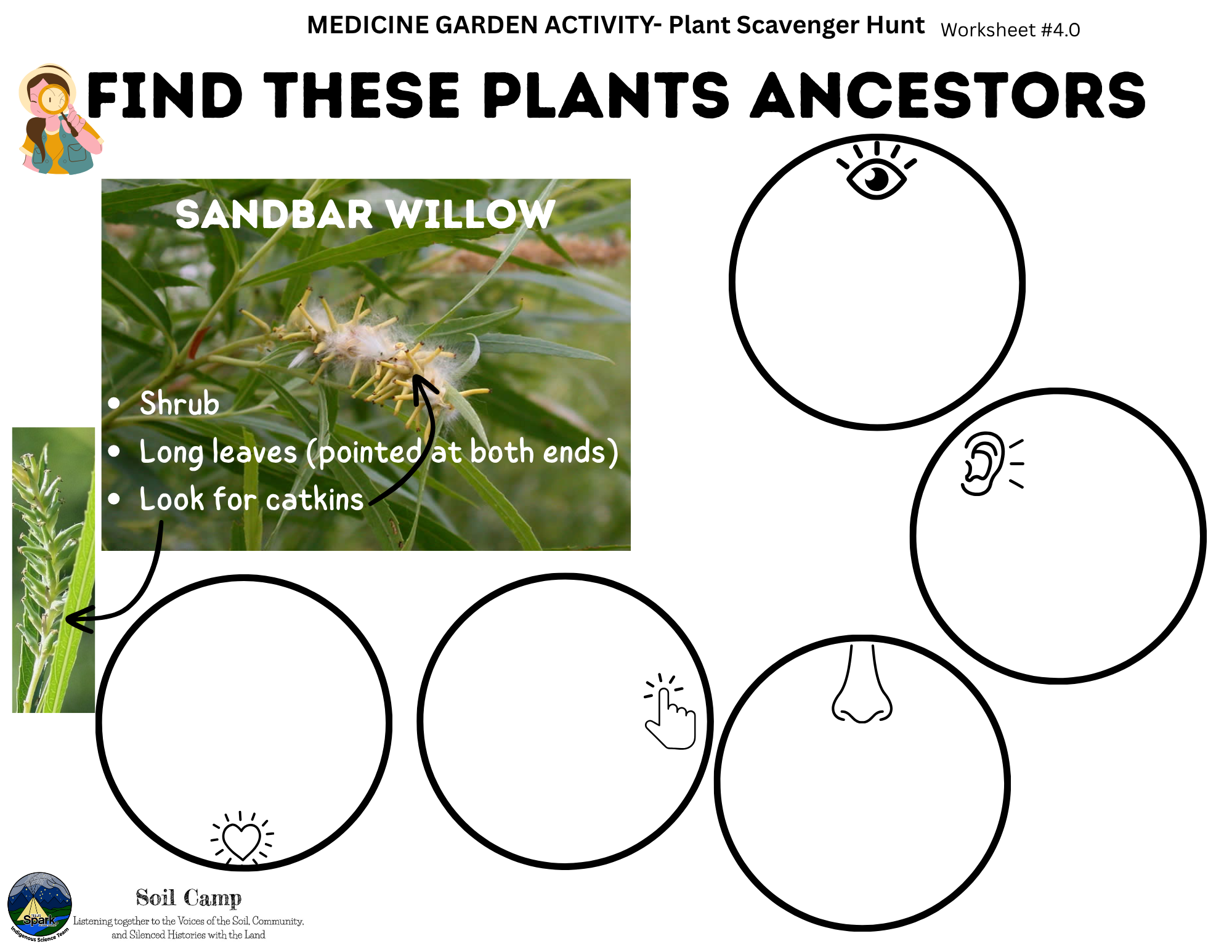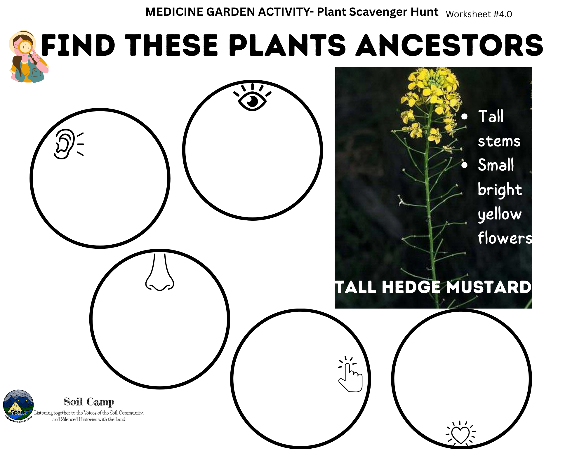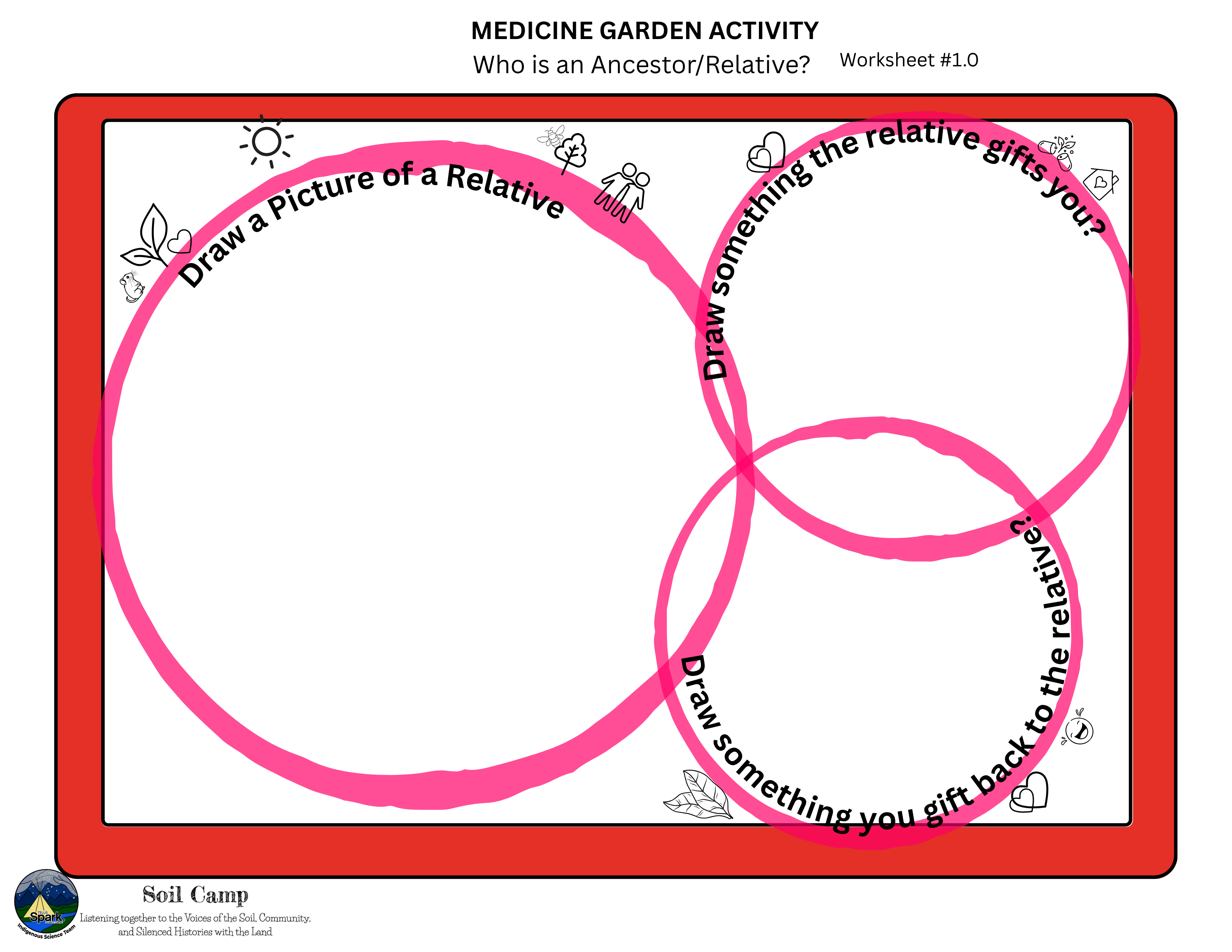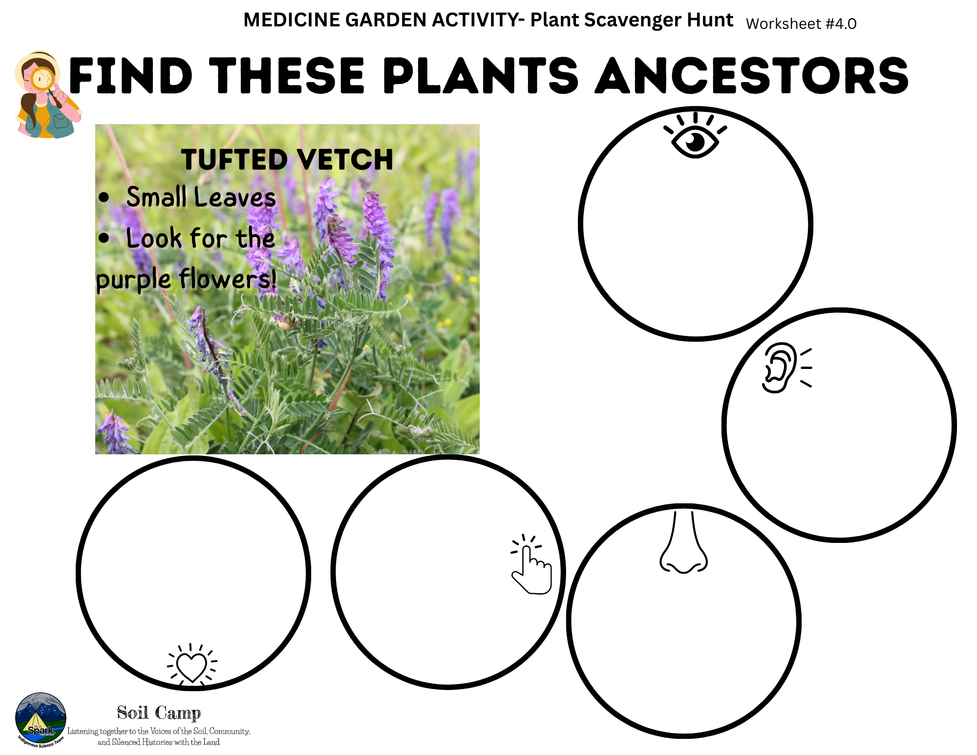 Soil Camp collaborated with Spark’s Indigenous Science Connections team—Dr. Kori Czuy and Alex Flett—to co-design the series of activities below, grounded in the teachings of the on-site medicine garden. These activities explore human-plant relationships and can be adapted to various learning contexts.